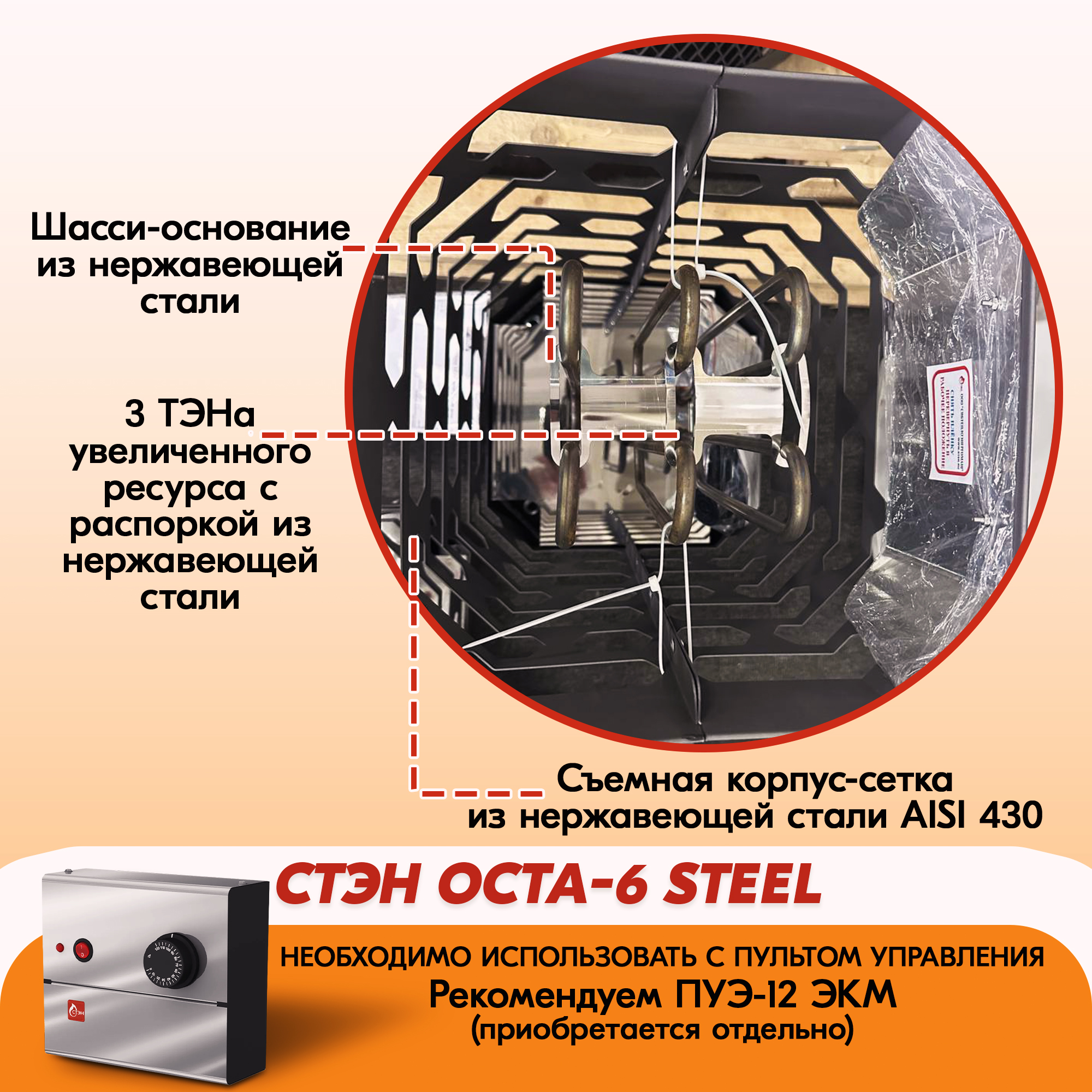 Электрическая каменка СТЭН ЭКМ 6 Octa steel в Симферополе | Доставка по России