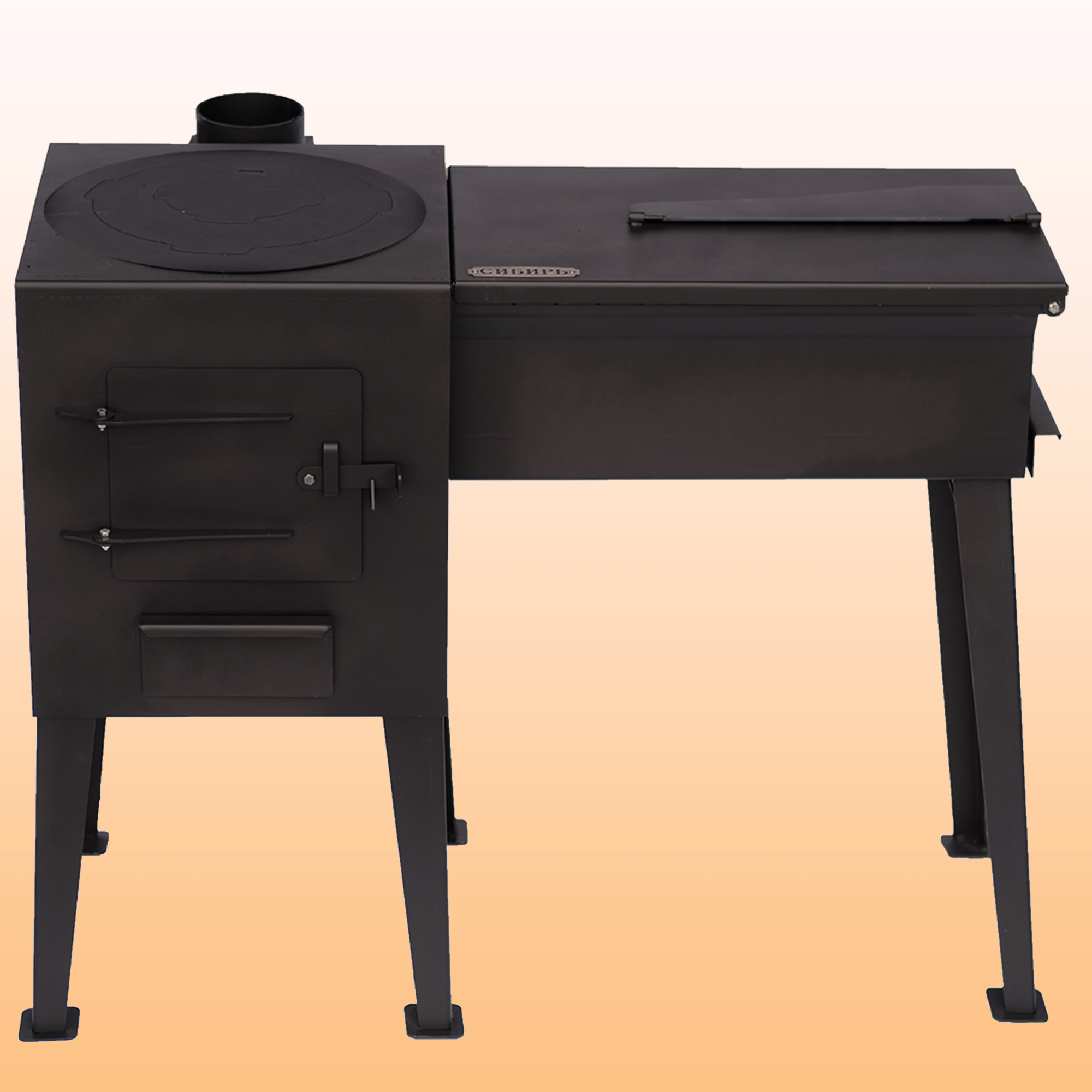 Универсальная Коптильня PECHITEPLOV (ПЕЧИТЕПЛОВ) (260х300х400) позволит вам готовить копчёности, а благодаря казану-мангалу «Сибирь» вы сможете удобно ее разместить.