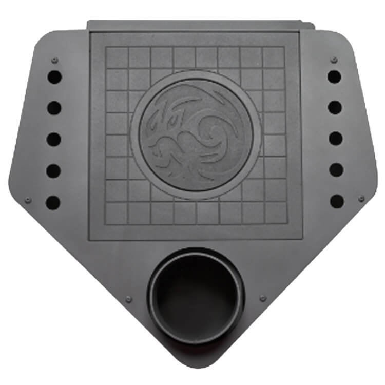 Печь-камин Экокамин Бавария ЭКО угловая с плитой — угловой вариант исполнения печи камина с одноименным названием. Отличное решение для маленького пространства! Вмещает поленья размером до 50 см. Бавария ЭКО - это недорогая печь для дачного дома. Оснащена плитой для приготовления пищи. Она легка в обслуживании и установке, а для ее монтажа не нужен фундамент. Мощная и простая в установке и использовании печь будет долго Вас радовать теплом и видом огня. Чугунный колосник, режим экономичного расхода топлива, система очистки стекла, керамические вставки «под мрамор» на боковых панелях. Простая установка (требуется только подключение к дымоходу) и эффективная теплоотдача (КПД до 80%). Печи камины «Бавария» обладают большой нагревательной мощностью и могут работать в режиме длительного горения (до 5 часов), что позволяет им быть одним из основных источником тепла. Способны быстро обогреть большое пространство, расходуя при этом небольшое количество топлива. Топка печи камина изготовлена из стали толщиной 6 мм, оборудована чугунным колосником и выложена шамотным кирпичом. Толщина стали контура печи — 3 мм. Грамотно спроектированный конвективный контур производит хороший съем тепла печи. Печи серии «Бавария» снабжены системой чистого горения, что позволяет оставаться керамическому стеклу чистым длительное время.