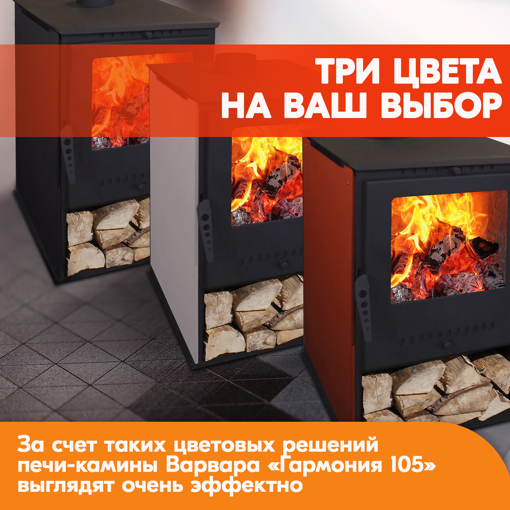 За счет таких цветовых решений печи-камины Варвара «Гармония 105» выглядят очень эффектно.