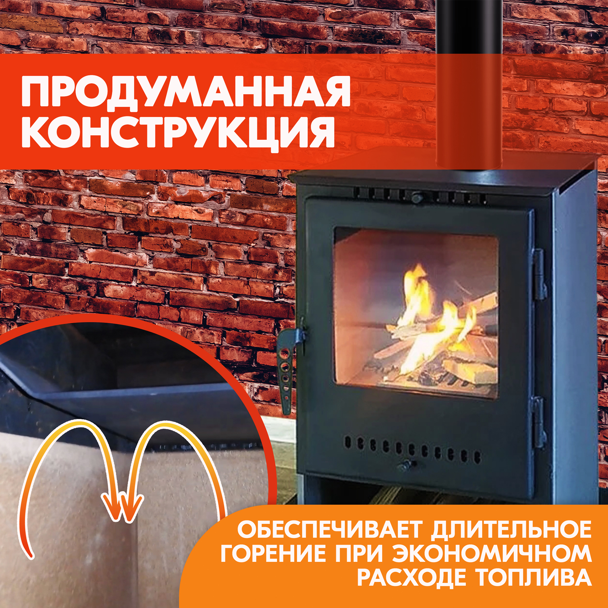 Компактная и легкая печка «Гармония 105» обладает высоким КПД в 75%, проста в эксплуатации и станет незаменимым элементом для отопления вашего загородного дома или дачи, при этом тепло в вашем доме не будет зависеть от перебоев электричества.