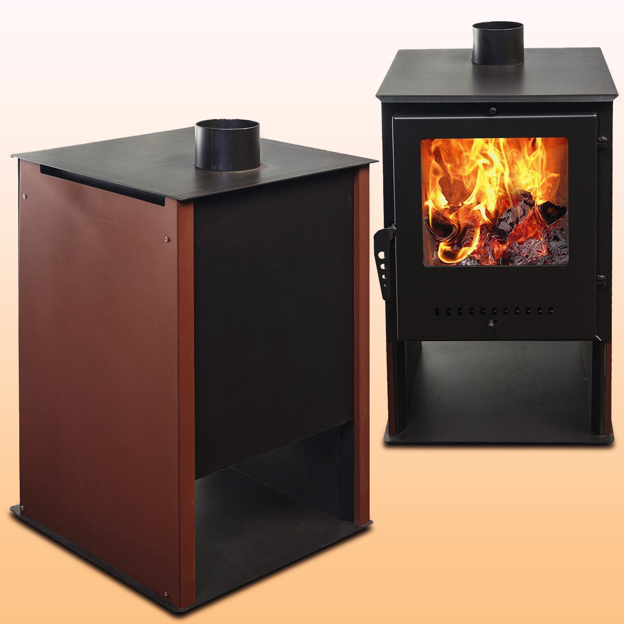 Боковые стенки металлической печи на дровах представляют собой конвекторы.