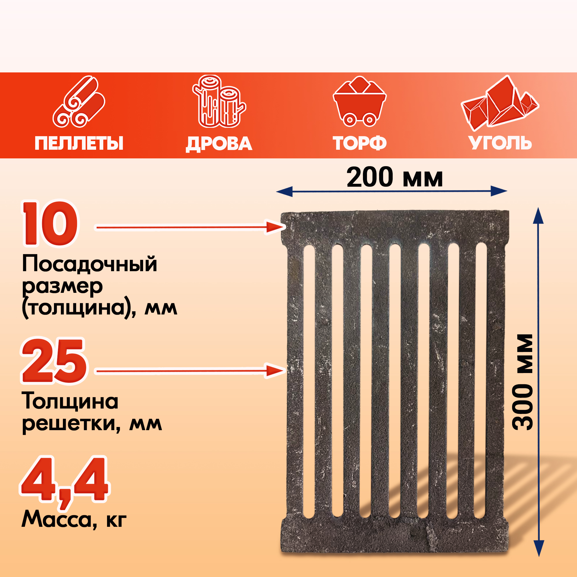 Модели колосниковых решеток для дров от Бисерского литейного завода также пригодны к топке торфом или брикетами из опилок.