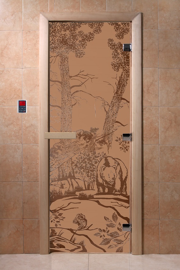 Дверь для сауны "Мишки в лесу" (матовая) 190х70 в Симферополе | Доставка по России