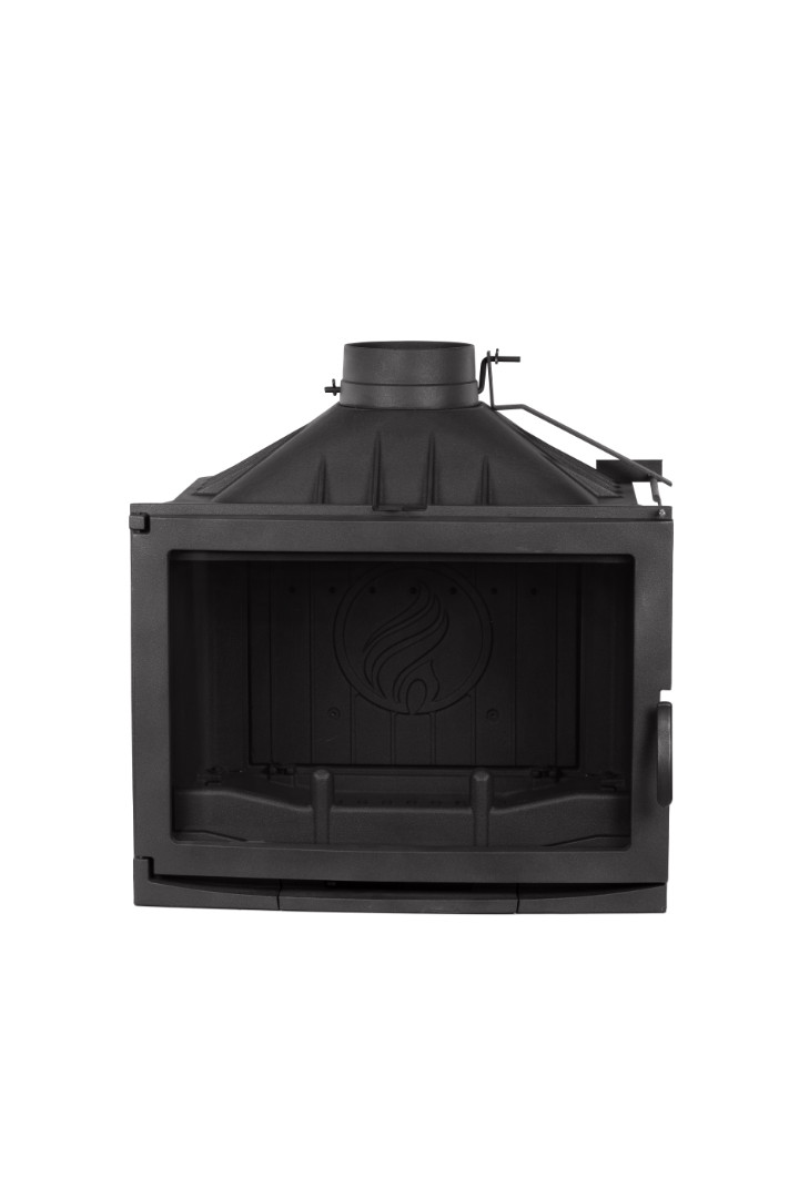 в дверце установлено панорамное стекло толщиной 5 мм с параметрами 580х370 мм (ВхШ), предоставляющее великолепный обзор внутренней части топки и обдуваемое потоками воздуха для недопущения оседания копоти и сажи;