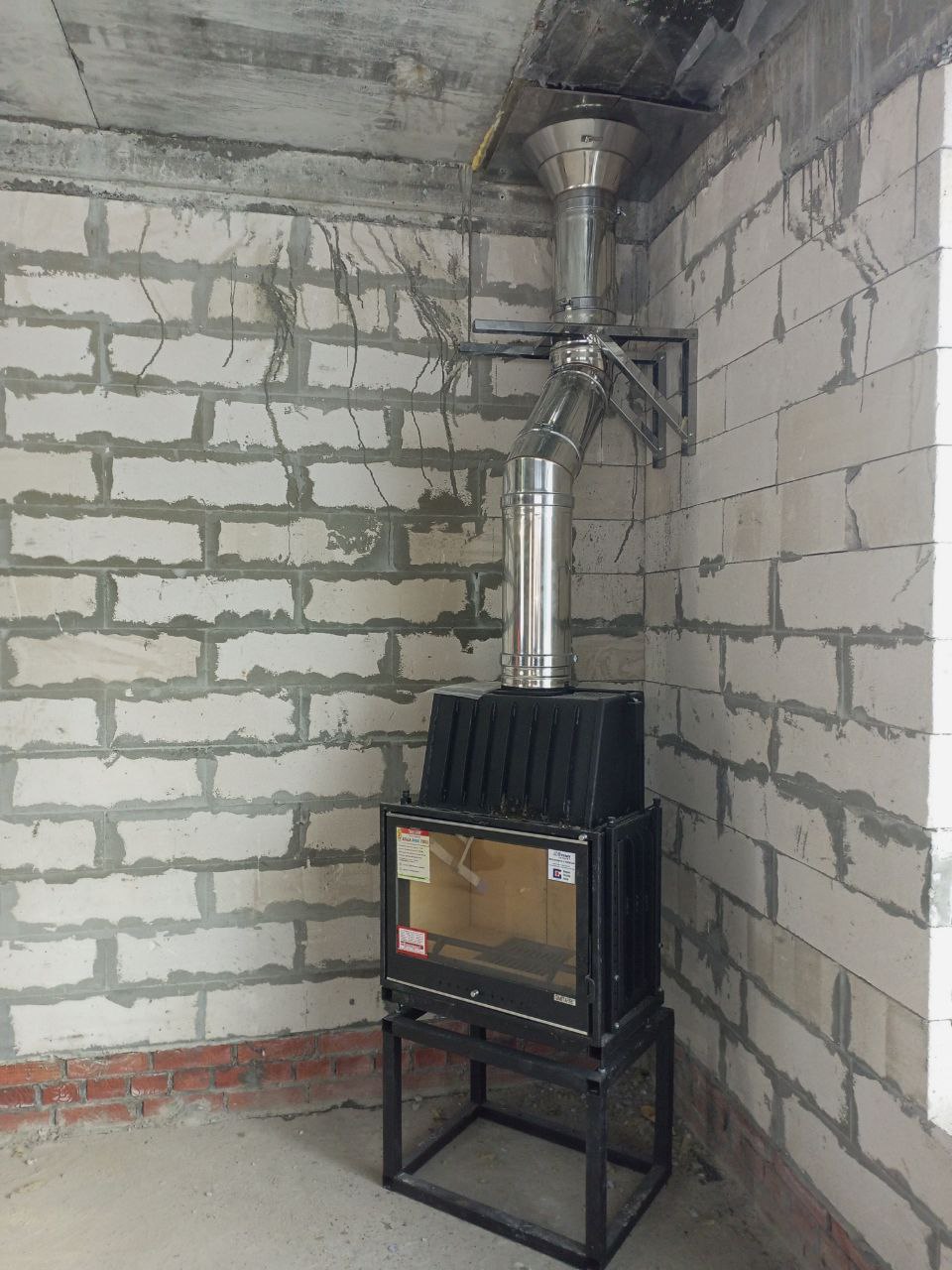 Установка каминой топки и монтаж дымохода Теплов и Сухов под отделку